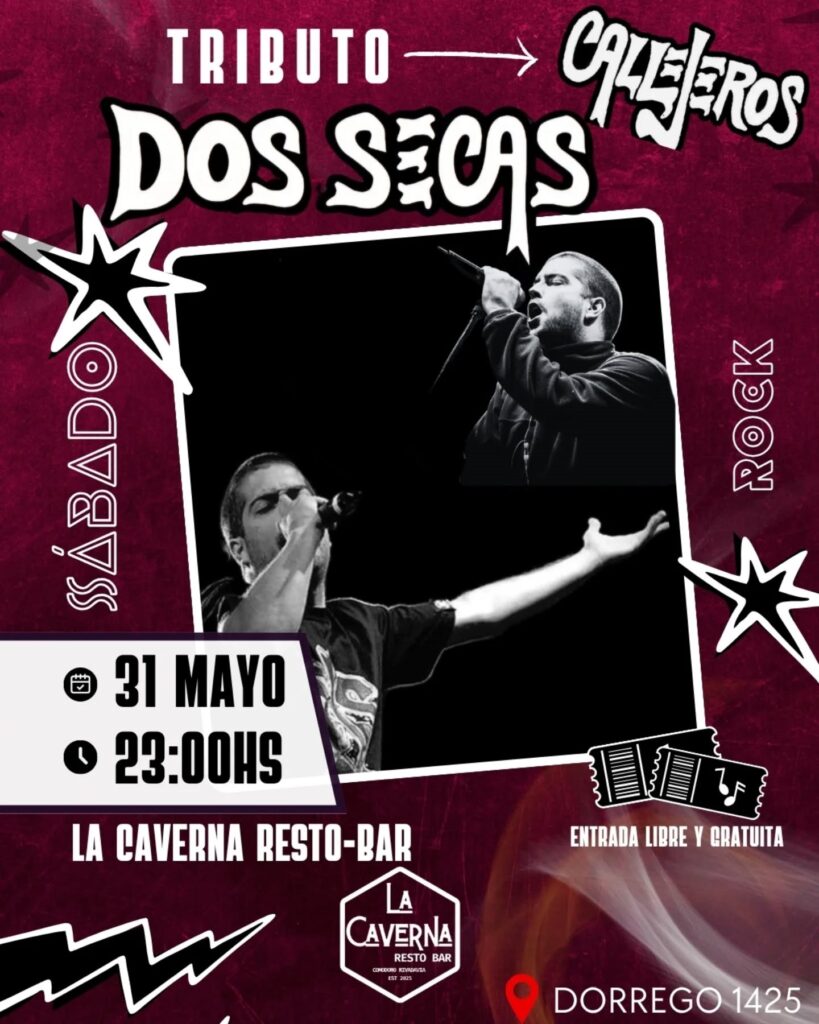 – En La Caverna Resto-Bar toca Dos Secas (tributo a Callejeros). Las puertas abren a las 19:00 y el show arranca a las 23:00. La entrada es libre y gratuita.