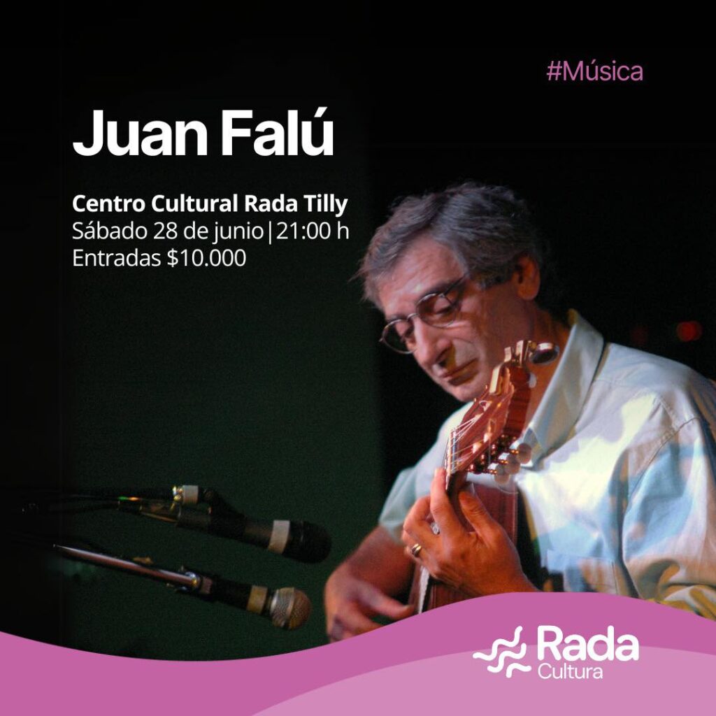 – En el Centro Cultural Rada Tilly, desde las 21:00, se presenta Juan Falú, un referente de nuestra música popular, músico, compositor e intérprete que lleva la música argentina por el mundo desde hace más de 30 años. Las entradas tienen un valor de $10.000 y se consiguen en https://radatilly.boleteriadigital.com.ar/ubicaciones