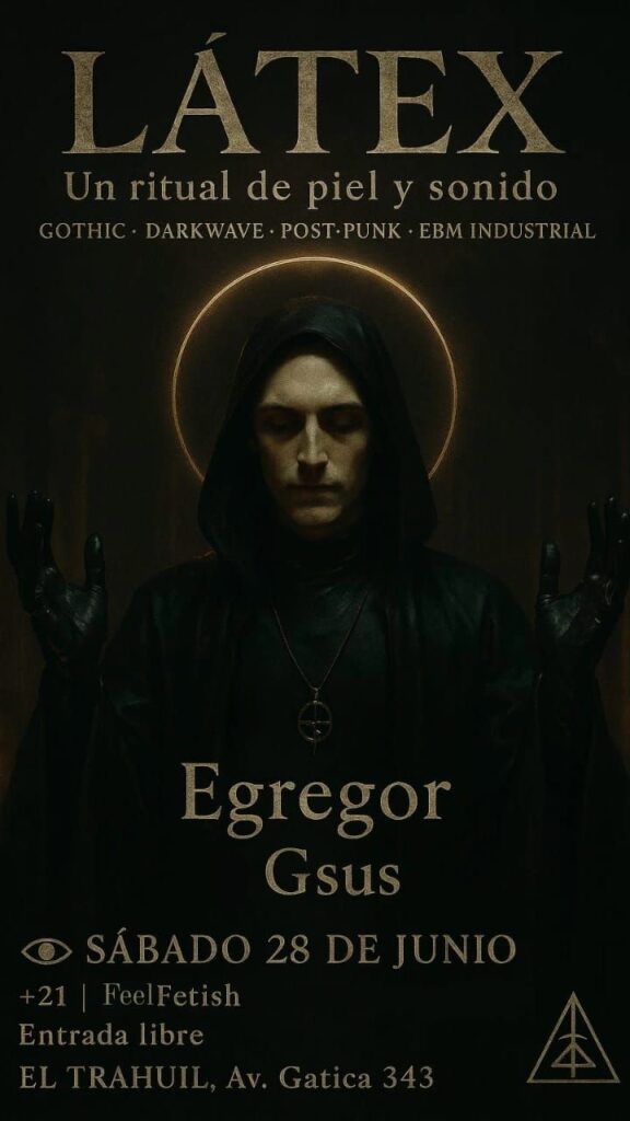– En El Trahuil, desde las 00:00 hs, Egregor y Gsus presentan “Látex, un ritual de piel y sonido”, con gothic, darkwave, post punk e industrial. Prepárense para una noche oscura, una experiencia única y distinta para sacar de tus rincones más profundos toda la magia de tu ser, sin tabúes, sin complejos y sin reglas. La entrada es gratuita, para mayores de 21 años.