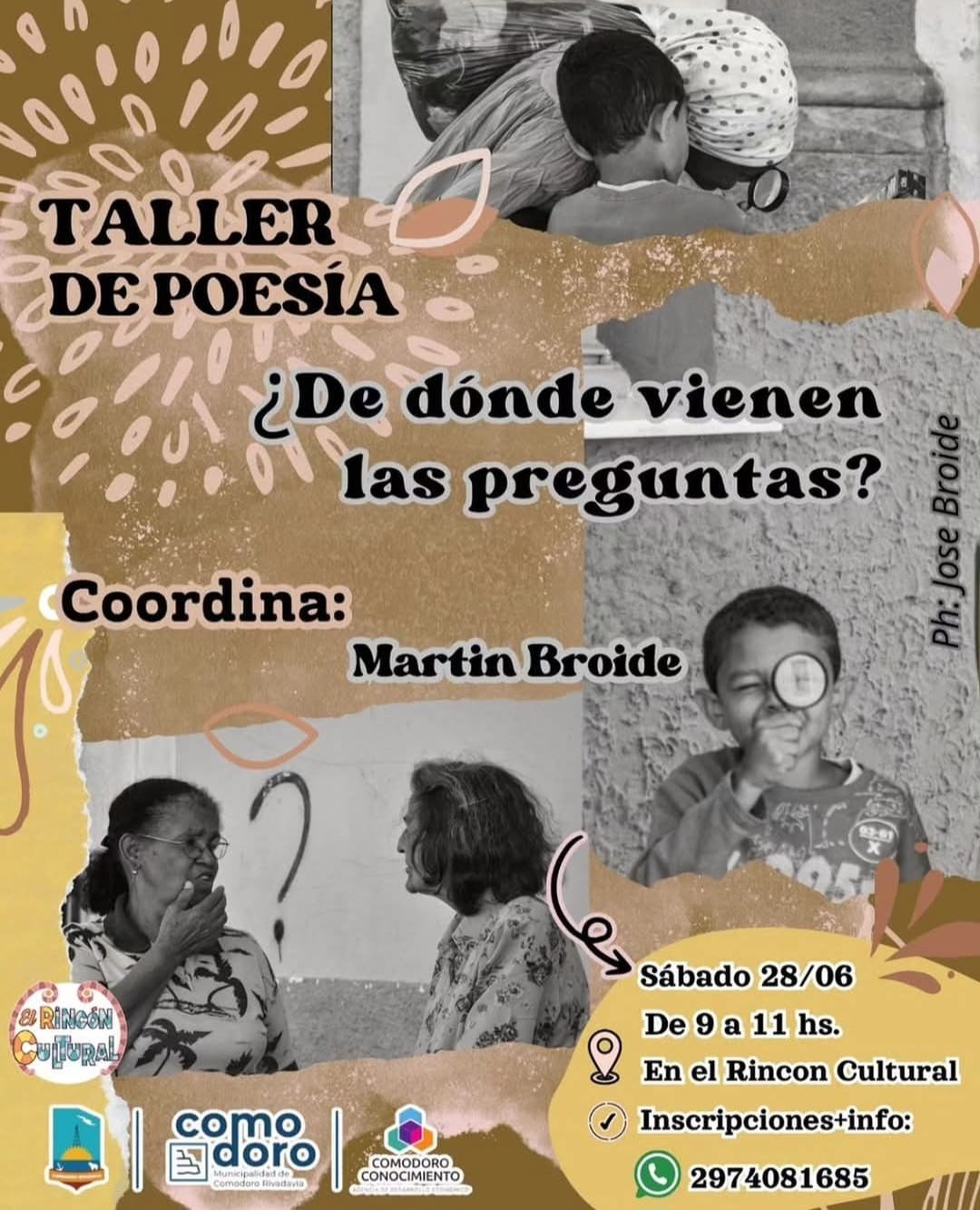 – En El Rincón Cultural, de 9:00 a 11:00, se realiza el taller de poesía “¿De dónde vienen las preguntas?”, con la coordinación de Martín Broide. Por inscripciones e información, los interesados pueden comunicarse por WhatsApp al 297-4081685.