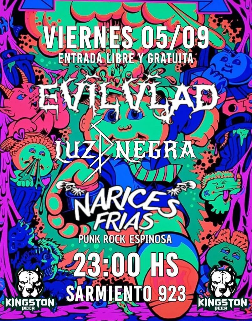 – En Elementos Cervecería, a partir de las 23:00, se presentan Evil Vlad, Luz Negra y Narices Frías.