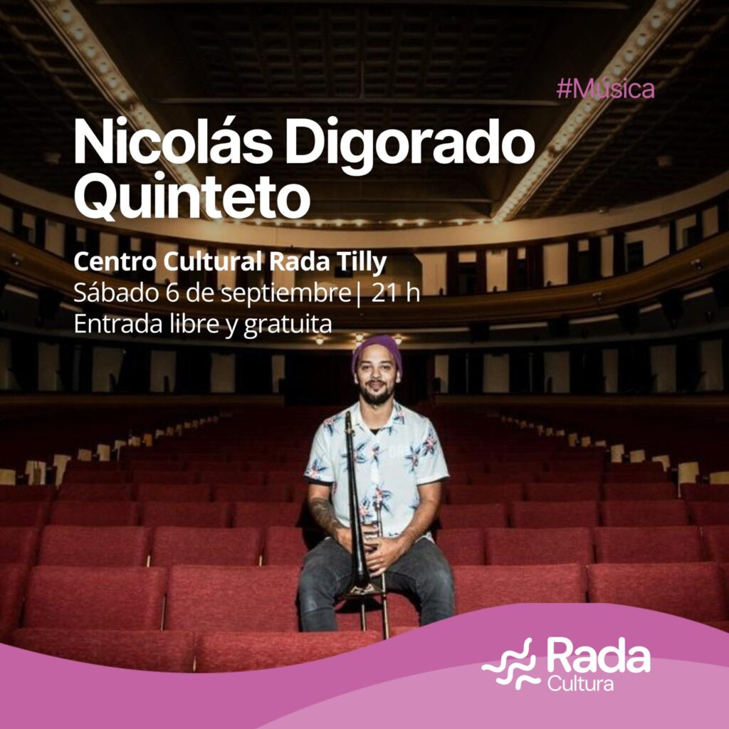 – En el Centro Cultural Rada Tilly, desde las 21:00, se presenta el Quinteto de Nicolás Digorado, integrado por el mismo Digorado en trombón, Nahuel Araujo en batería, Damián Donoso en contrabajo, Santiago Silva en piano y Héctor Jaramillo en saxo. Es un concierto gratuito de jazz y soul con influencias clásicas, pero con un sello patagónico único.