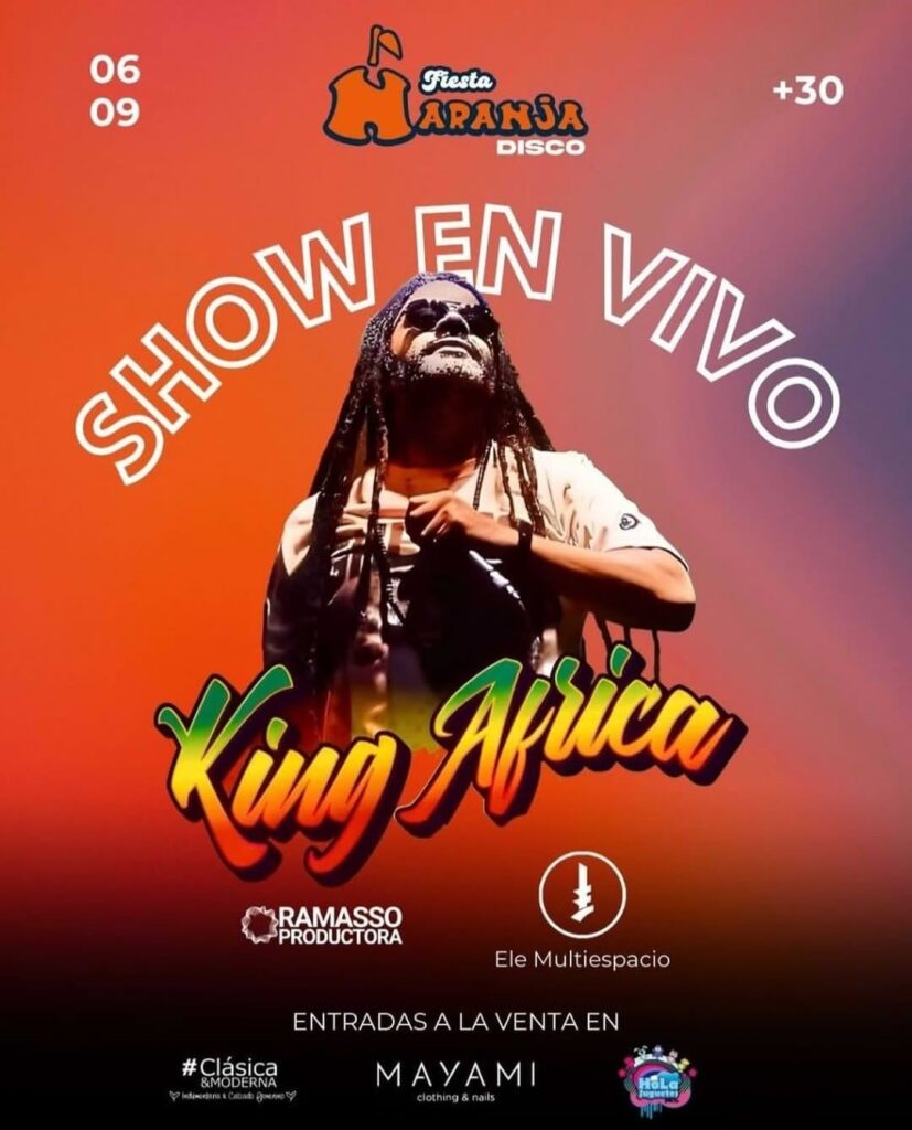 – En Ele Multiespacio se presenta King África, en el marco de la Fiesta Naranja Disco.