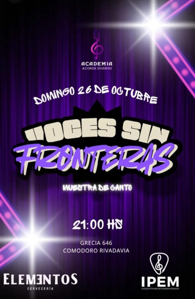 – En Elementos Cervecería (Grecia 646), a las 21:00, la Academia Acorde Diverso presenta la muestra de canto “Voces sin fronteras”.