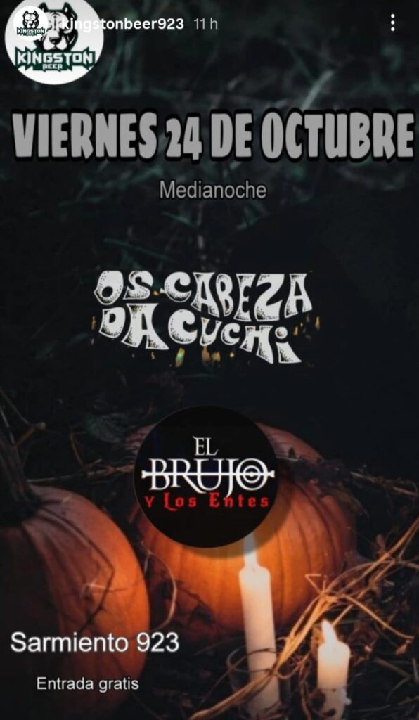 – En Kingston Beer (Sarmiento 923), desde la medianoche, se presentan Os Cabeza Da Cuchi y El Brujo y Los Entes.