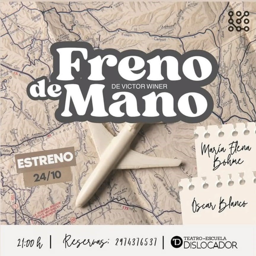 – En el Teatro Dislocador (Pellegrini 928), a las 21:00, se presenta la obra “Freno de mano”, de Víctor Winer, con María Elena Bohme y Oscar Blanco. Reservas, al 297-4376537.