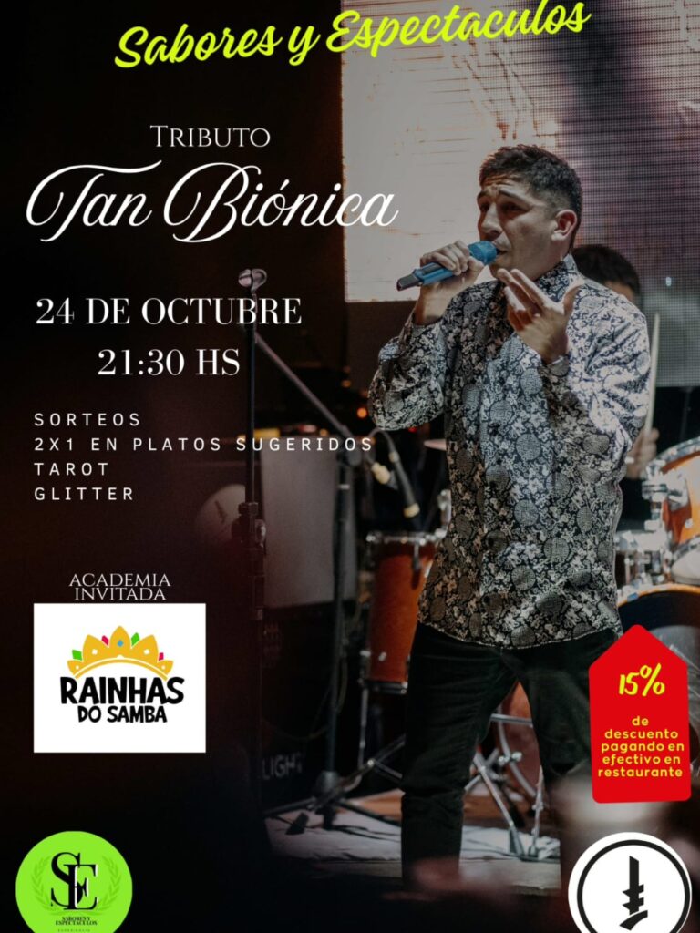 – En Ele Multiespacio, desde las 21:30, en el marco del ciclo “Sabores y Espectáculos”, se presenta el Tributo a Tan Biónica, además de la academia Rainhas do Samba. Hay sorteos, 2×1 en platos sugeridos, tarot y glitter.
