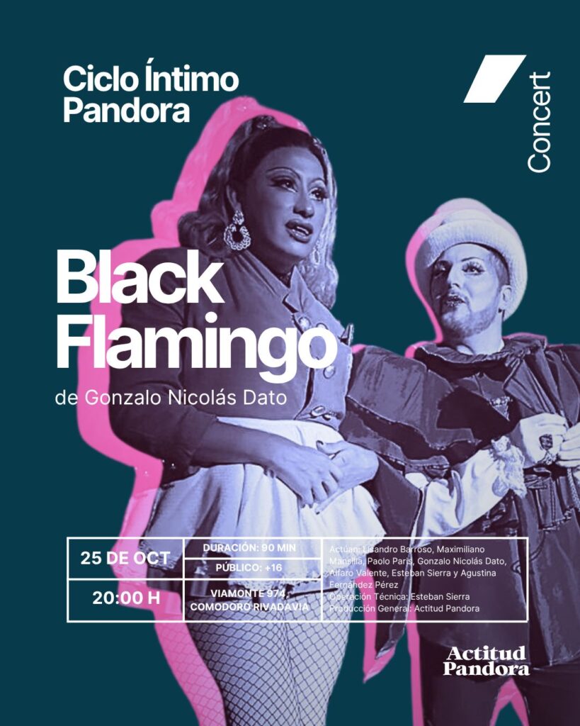 – En Actitud Pandora (Viamonte 974), desde las 20:00, se presenta la obra “Black Flamingo”, un espectáculo que mezcla el teatro con la magia del café concert. Reservas, al 297-4161200.
