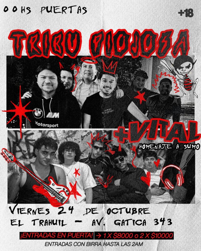 – En El Trahuil (Gatica 343) hay noche de homenajes, con Tribu Piojosa (tributo a Los Piojos) y Vital (tributo a Sumo). Las puertas abren a la medianoche. Entradas: $8.000 o dos por $10.000. Hasta las 2:00 es con una consumición gratis.