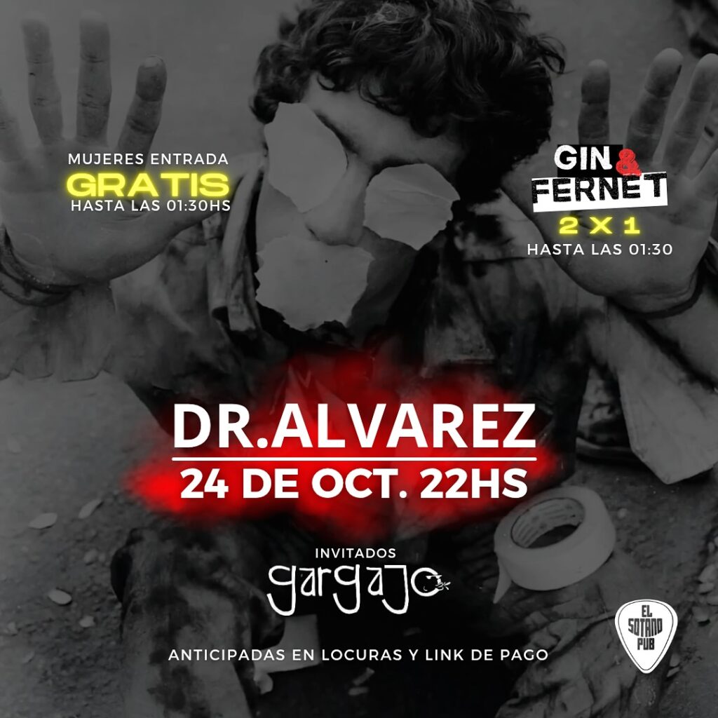 – En El Sótano Pub (San Martín 239) se presenta Dr. Álvarez (tributo a Viejas Locas e Intoxicados), junto a Gargajo. Puertas y boletería abren a las 22:00, mujeres ingresan gratis hasta la 1:30 y hay 2×1 en fernet y gintonería hasta el mismo horario. Anticipadas con descuento, disponibles en Locuras (San Martín 464) y digitales en https://linktr.ee/sotanopub.