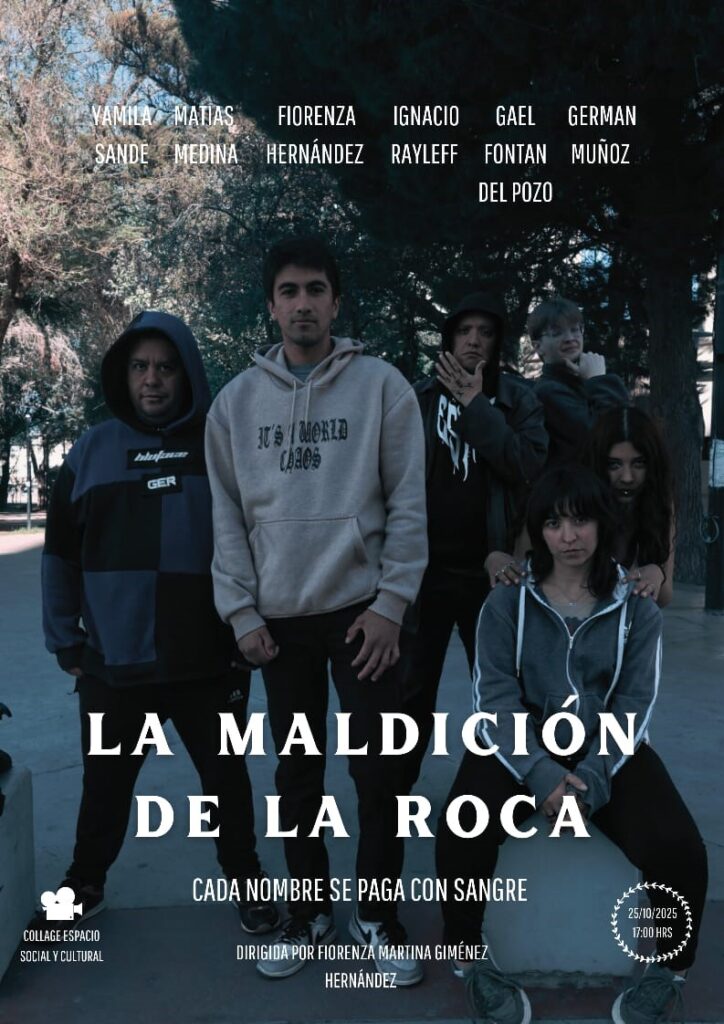 – En Collage (Belgrano 1053), a partir de las 17:00, se proyecta el corto “La maldición de la roca – Cada nombre se paga con sangre”, dirigida por Fiorenza Martina Giménez Hernández.