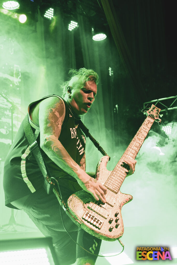 A partir de allí, el ida y vuelta del frontman con el público fue constante. Primero recordó que no tocaban en Comodoro desde 2018, cuando se presentaron junto a Malón y Horcas, pero también rememoró la primera vez que pisaron la tierra de los vientos y el cantito “Comodoooro, Comodoooro…”, que fue seguido por los asistentes.