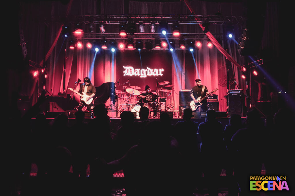 Por fin, el festival comenzó a las 22:45 con Dagdar. Al trío comodorense de heavy metal neoclásico y hard rock le tocó calentar el escenario en una velada donde predominaban estilos más “agresivos”, musicalmente hablando. Su propuesta fue bien recibida y su show de media hora fue contundente y prolijo, con mayoría de canciones propias y un cierre con “Callejero”, de Rata Blanca, una marcada influencia en la banda.