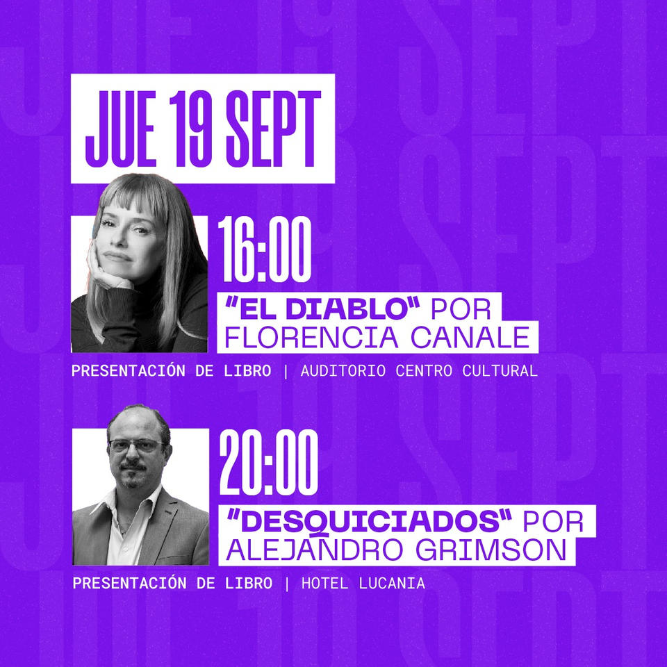 – 18:00 Presentación de libro El Diablo. Bernardo de Monteagudo. El hombre prohibido, el héroe imposible. Ed. El Planeta-Florencia Canale