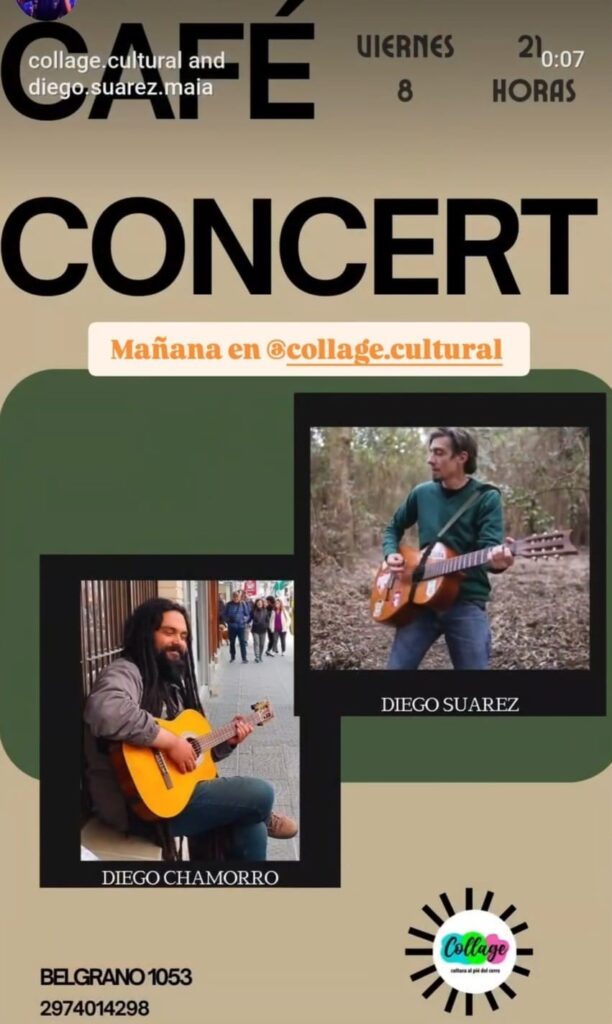 – En Collage, desde las 21:00, hay Café Concert con Diego Chamorro y Diego Suárez.