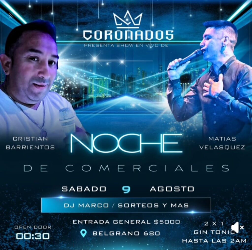 – En Coronados, desde la medianoche, hay noche de comerciales con Cristian Barrientos y Matías Velásquez. La entrada tiene un valor de $5.000.