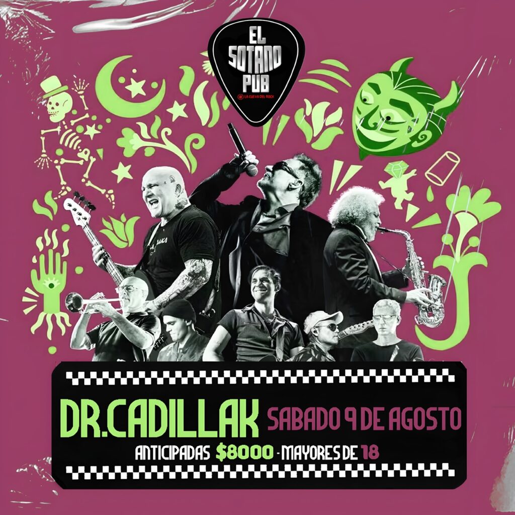 – En El Sótano Pub se presenta Dr. Cadillac, el tributo más potente a Los Fabulosos Cadillacs, en una noche cargada de ska, cumbia, rock y clásicos para cantar de principio a fin. Las entradas anticipadas con descuento tienen un valor de $8.000 + cargo de servicio. También se consiguen en Locuras. Puerta y boletería abren a las 22:00 y el show es para mayores de 18 años.