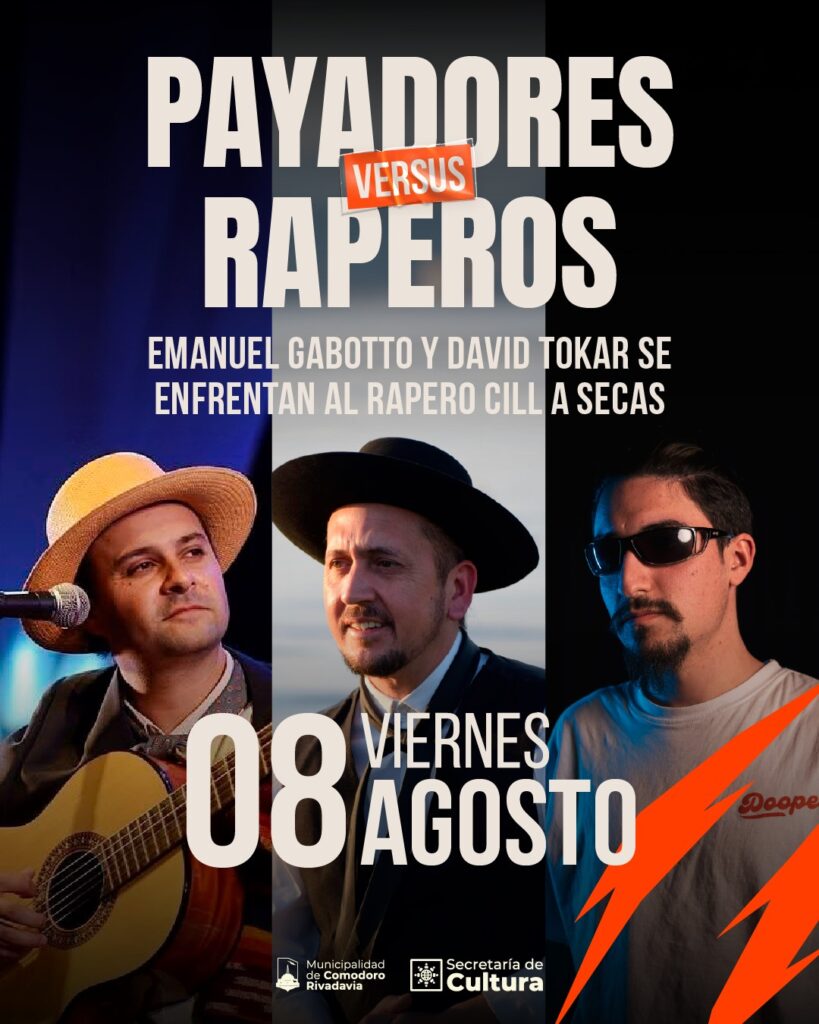 – Por la Feria del Libro, en el Café Cultural, de 21:00 a 22:30, hay batalla de los payadores Emanuel Gabotto y David Tokar contra el rapero Cill a Secas.