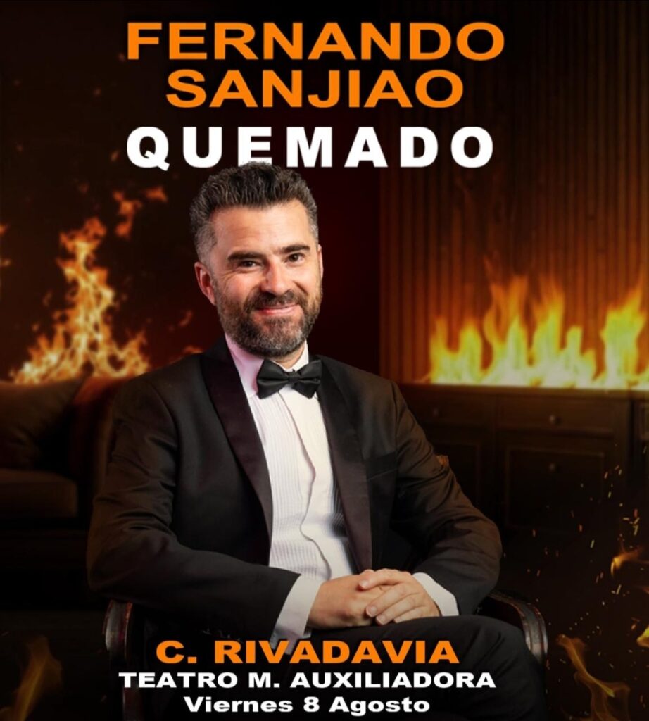 – Fernando Sanjiao, referente del stand up en Argentina y formador de comediantes como Luciano Mellera y Fernanda Metilli, llega al Teatro María Auxiliadora para presentar su show “Quemado”. Las puertas abren a las 20:30 y las entradas están en venta en Don José Hogar y vía online en https://cdmticket.ar/