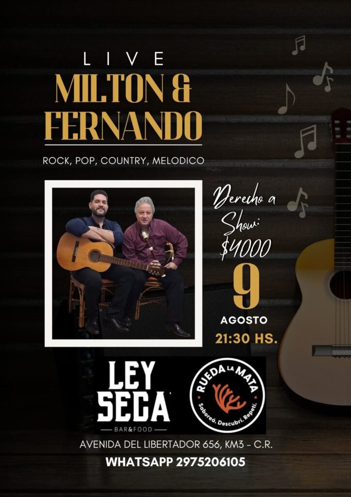 – En Ley Seca, desde las 21:30, se presentan Milton y Fernando con canciones de rock, pop, country y melódico.
