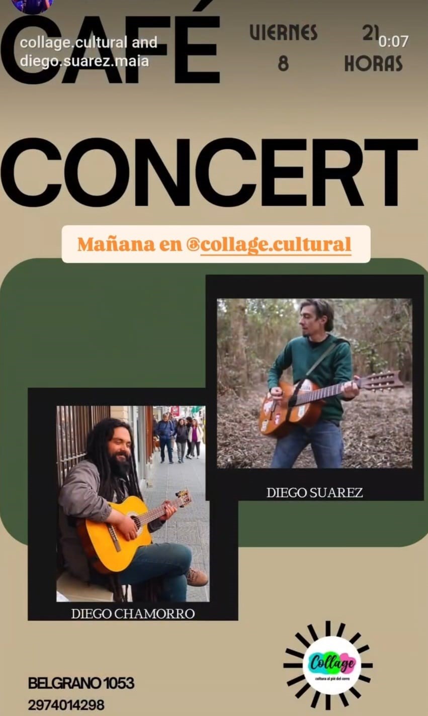 – En Collage, desde las 21:00, hay Café Concert con Diego Chamorro y Diego Suárez.