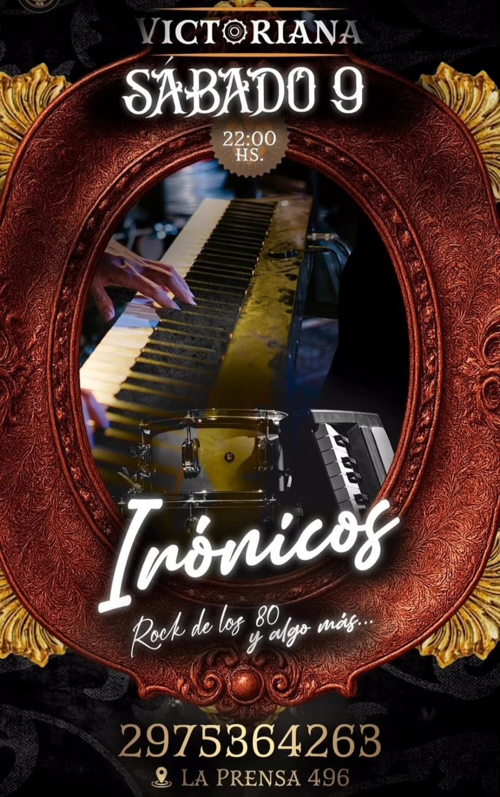 – En Victoriana Pub, desde las 22:00, se presenta Irónicos, con rock de los 80’s y algo más.