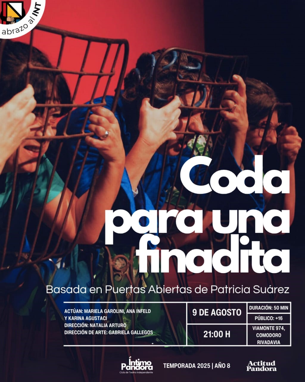 – En Actitud Pandora, a partir de las 21:00, se presenta la obra de teatro “Coda para una finadita”, basada en “A puertas abiertas”, de Patricia Suárez.