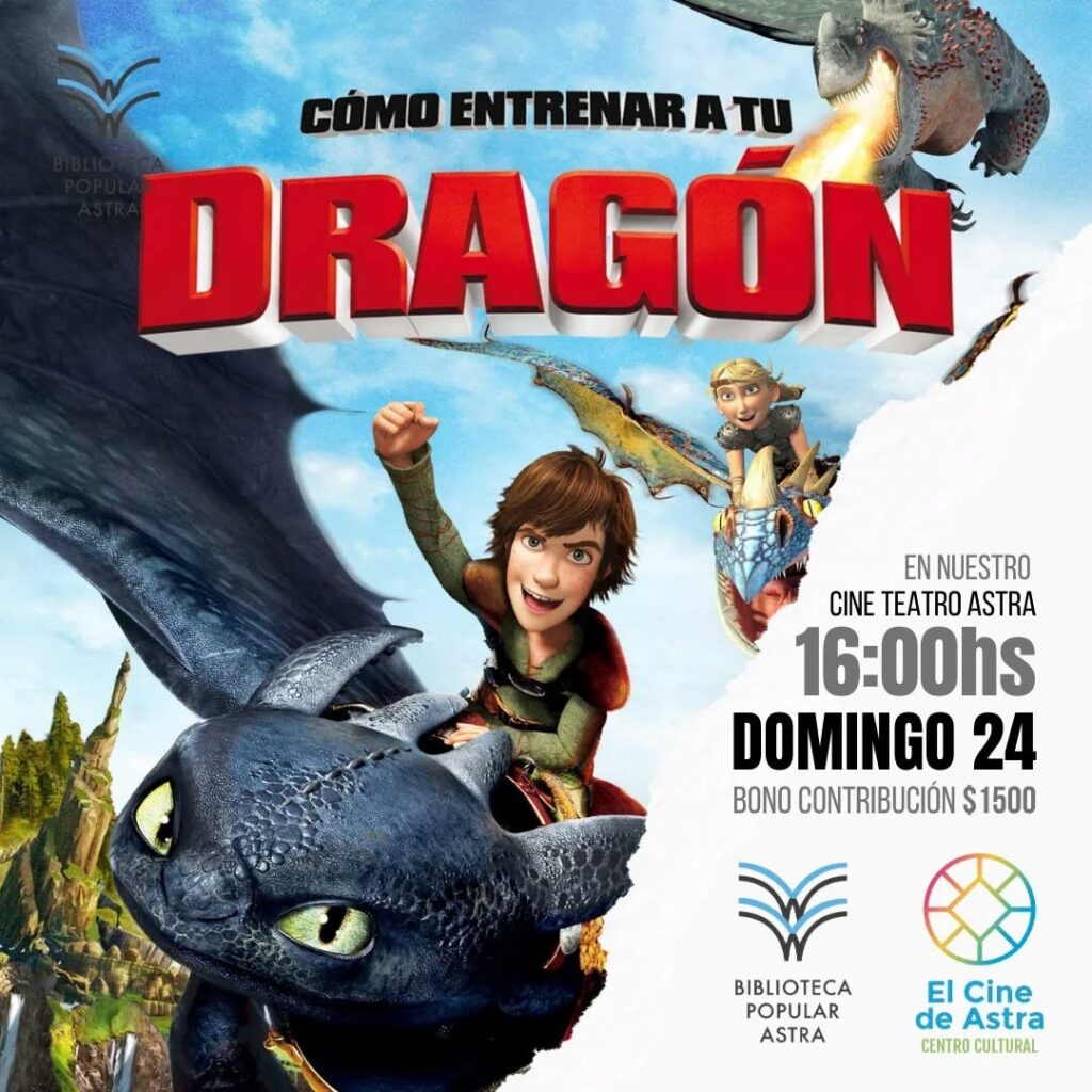 – En el Cine Teatro Astra, desde las 16:00, se proyecta “Cómo entrenar a tu dragón” (2010). El bono contribución es de $1.500.