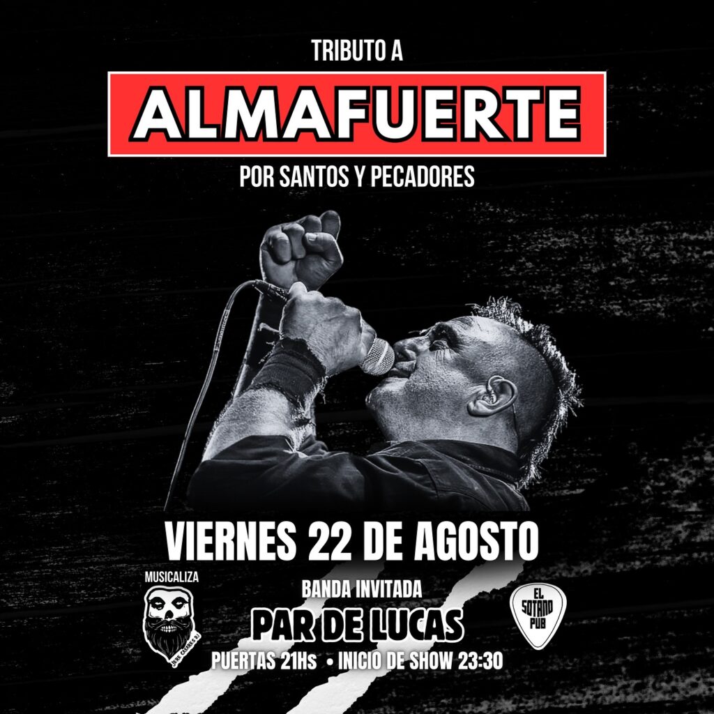 – En El Sótano Pub se presenta Santos y Pecadores, que llega desde Buenos Aires con su tributo a Almafuerte. La banda invitada es Par de Lucas y musicaliza la velada Jere Casares. Puertas y boletería abren a las 21:00 y el show arranca a las 23:30, puntual.