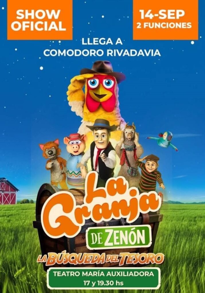– Llega al Teatro María Auxiliadora el espectáculo infantil “La Granja de Zenón – La búsqueda del tesoro”, con doble función, en los horarios de las 17:00 y 19:30.