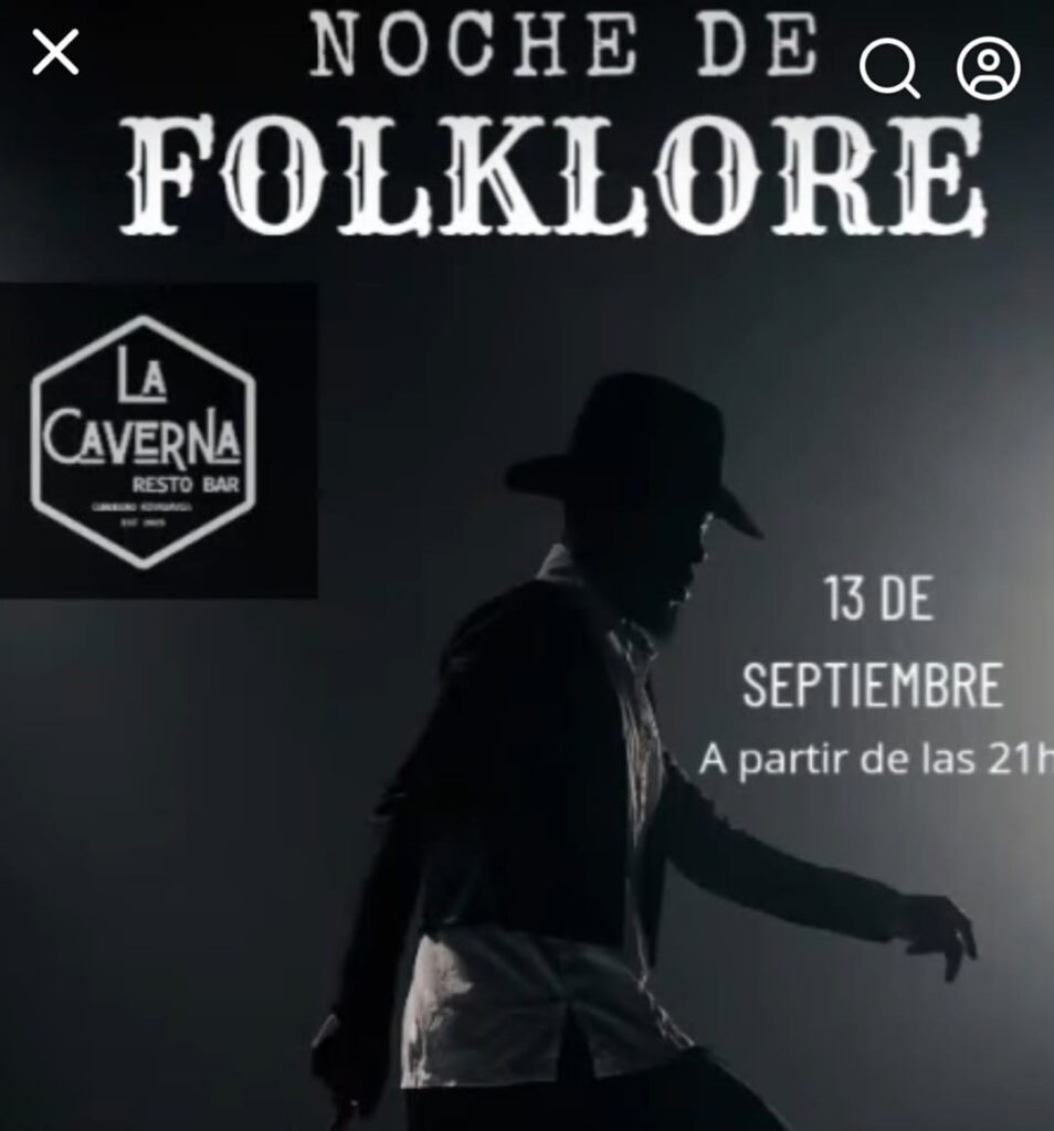 – En La Caverna Resto-Bar, a partir de las 20:00, hay Peña Folklórica organizada por Sebastián Godoy. Los invitados especiales son Nuevo Reencuentro, Pollo Morales, Romina Maldonado, Valentina (del «Ballet Amancay»), Recuerdo Sureño, Los Fredes y La Resiembra.