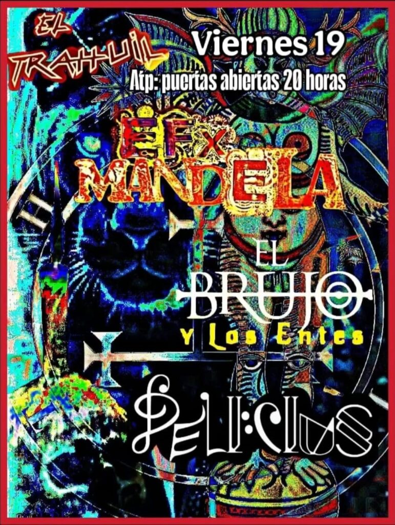 En El Trahuil se presentan Efecto Mandela, El Brujo y Los Entes y Delicious. Las puertas abren a las 20:00.
