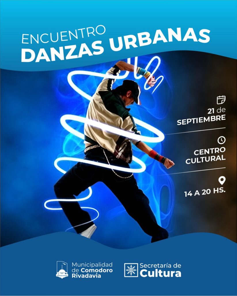 – En el Centro Cultural, de 14:00 a 20:00, se realiza el Encuentro de Danzas Urbanas con las presentaciones de Fire Dancer, We Dance, Alas Escuela de Danza, Fama Dance, Danzarte Sur, Academia Laura Matosín, Fix On, Kingdom Dancers, Imperio School, Taís, Danzas Maktub, Swing Estudio de Danza, Gaia Danzas, MV Dance, Shine Dance, Lemonies + Yunti, Rflow, Maö, Pasión y Alma, Wings Crew y Mood Dance. Como artista invitado, participa Relokati.