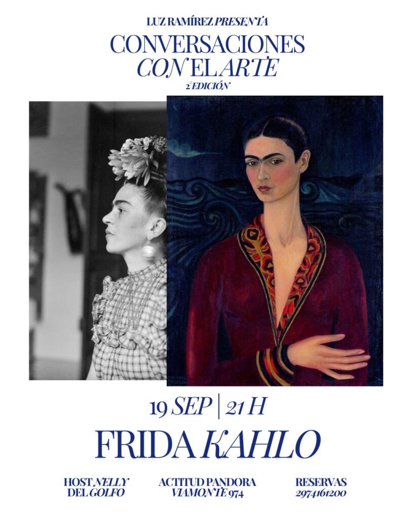 – En Actitud Pandora, a partir de las 21:00, vuelve el ciclo “Conversaciones con el arte”. Esta edición se enfoca en la vida y obra de Frida Kahlo, de la mano de Luz Ramírez. Además, estará presente Nelly del Golfo, habrá convite de vino y una ambientación que remonta al legendario Café Le Dome, donde los surrealistas liberaban el subconsciente.