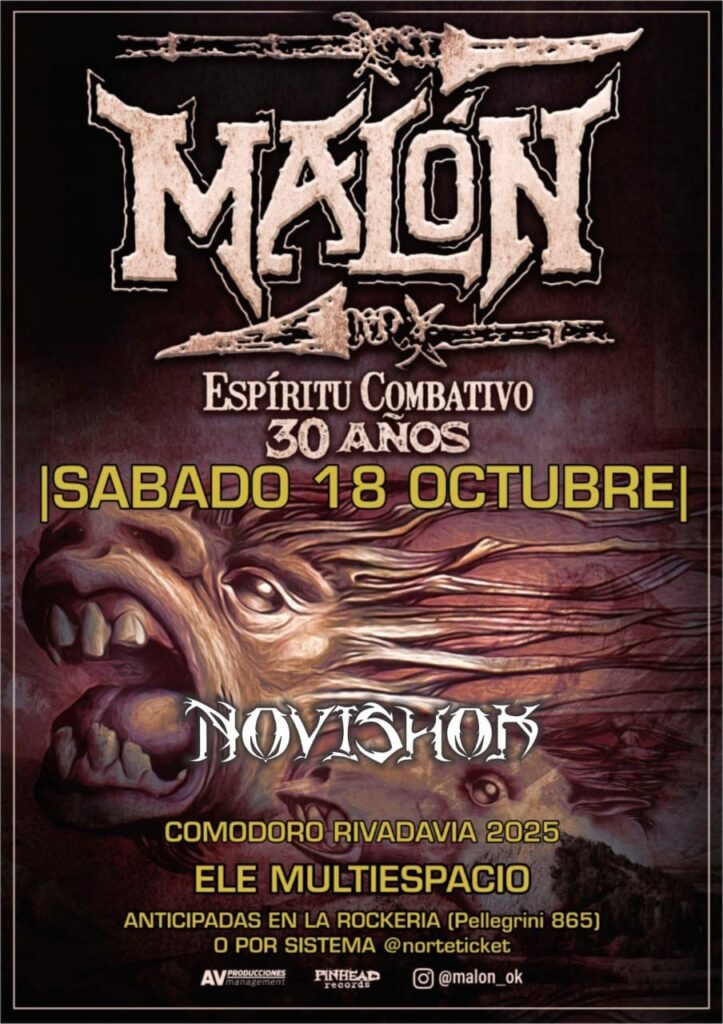 – En Ele Multiespacio, se presenta Malón con su gira por los 30 años de su álbum debut, “Espíritu combativo”. Las puertas abren a las 21:00, los invitados Novishok arrancan a las 22:00 y Malón comienza a las 23:00.