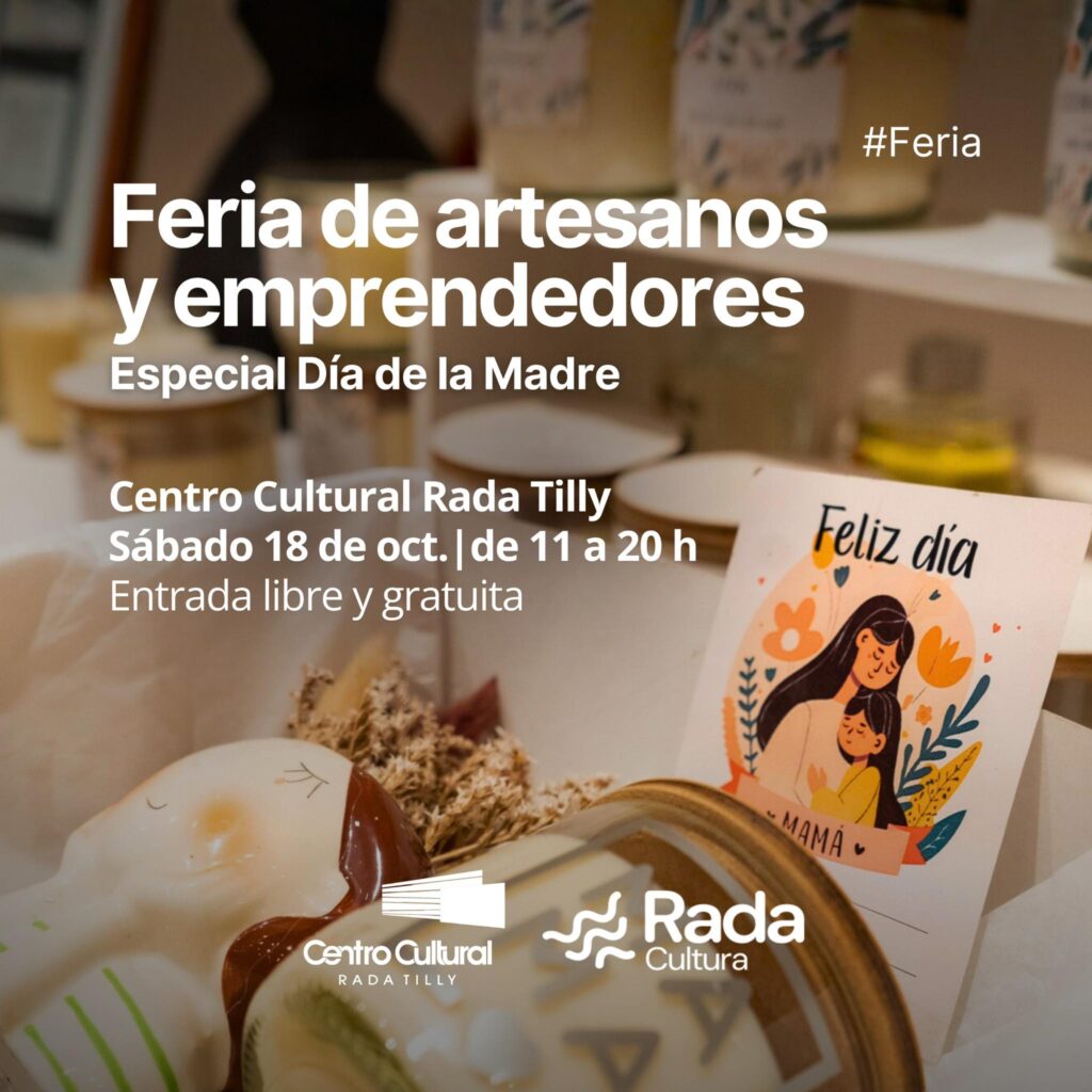 – En el Centro Cultural de Rada Tilly hay Feria de Artesanos y Emprendedores, en una jornada especial por el Día de la madre, de 11:00 a 20:00. La entrada es libre y gratuita.