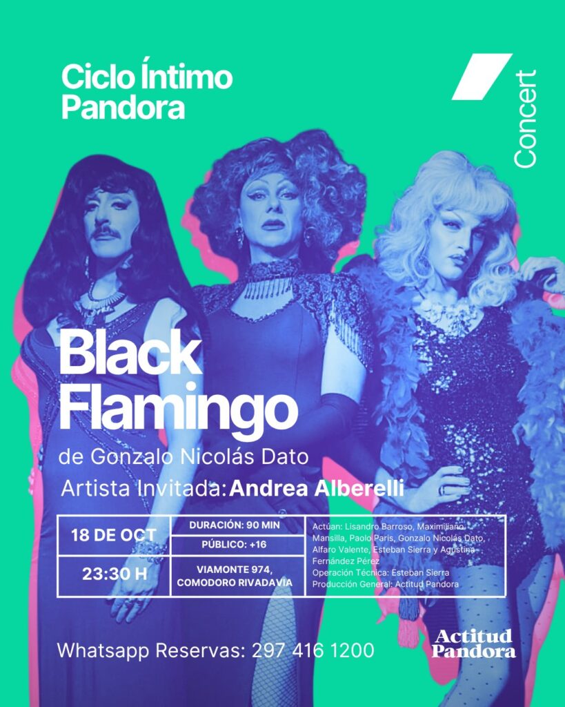 – En Actitud Pandora, el Hotel Flamingo reabre sus puertas a las 23:30, para recibir a las míticas y deslumbrantes “Flamingirls”, con la presentación de “Black Flamingo”, junto a la invitada especial Andrea Alberelli. Reservas, al 297-4161200.