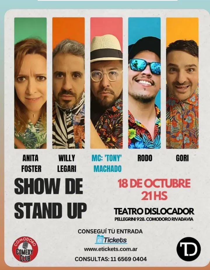 – En el Teatro Dislocador, desde las 21:00, hay show de stand up con Anita Foster, Willy Legari, Tony Machado, Rodo y Gori.