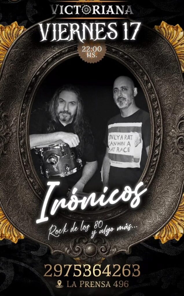 – En Victoriana Pub, desde las 22:00, se presenta Irónicos, con rock de los 80 y algo más.