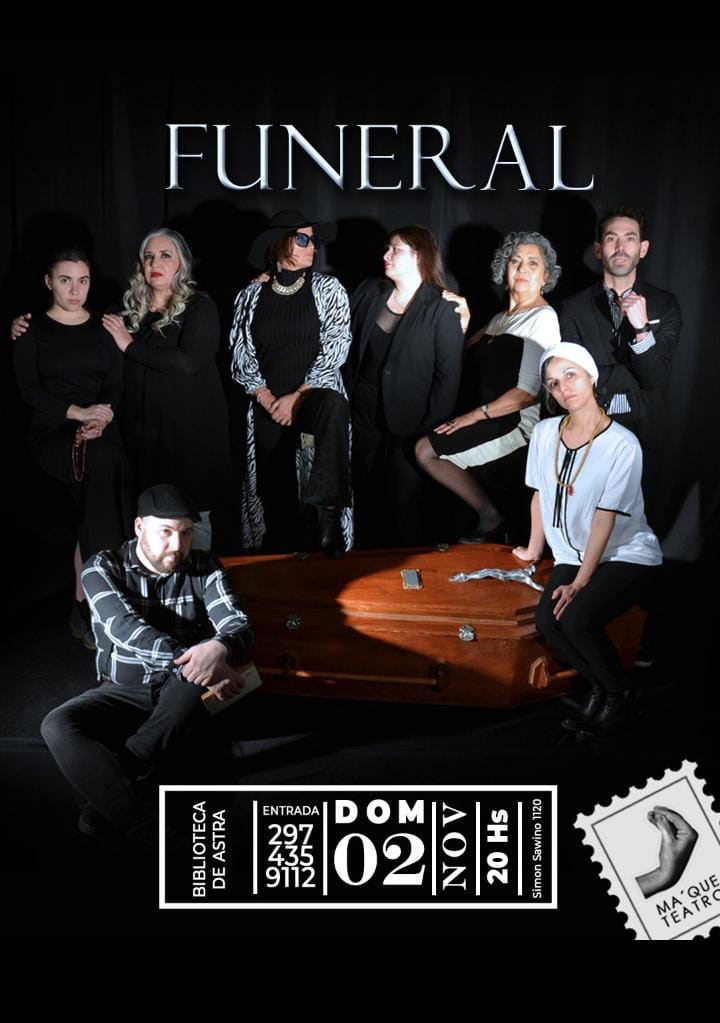 – En la Biblioteca Popular Astra, desde las 20:00, “Ma’ qué teatro” presenta la obra “Funeral”. Las entradas se consiguen comunicándose por WhatsApp al 297-4359112.