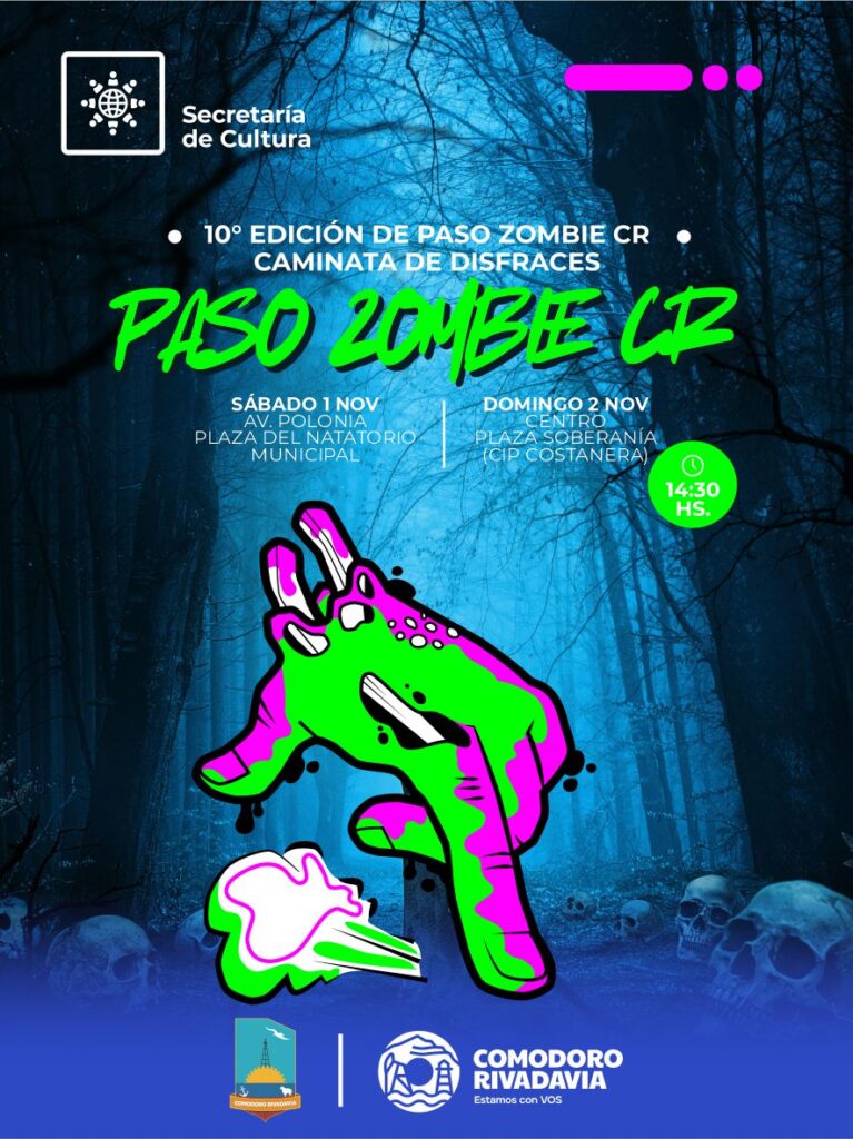 – El “Paso Zombie 2025” invade las calles de Comodoro Rivadavia en su 10° aniversario, con música, baile, circo y mucha diversión. La invitación es para todo el público, que puede ir disfrazado de lo que quiera en un evento familiar.