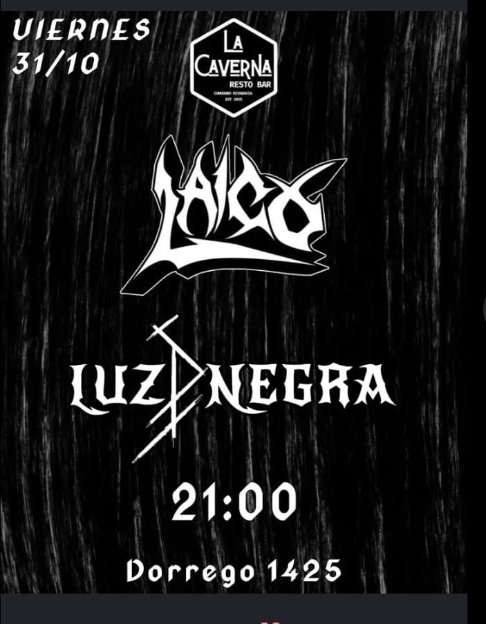 – En La Caverna Resto-Bar (Dorrego 1425) se presentan Laico y Luz Negra, a partir de las 23:00, con entrada libre y gratuita.