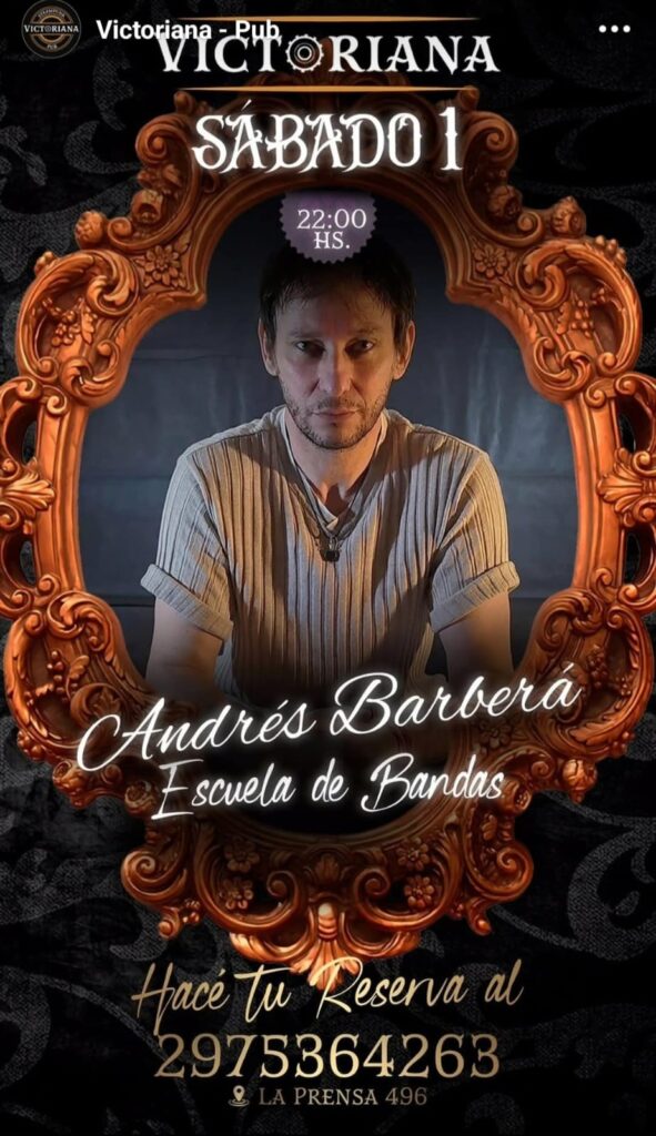 – En Victoriana Pub (La Prensa 496), desde las 22:00, se presenta Andrés Barberá con su escuela de bandas.