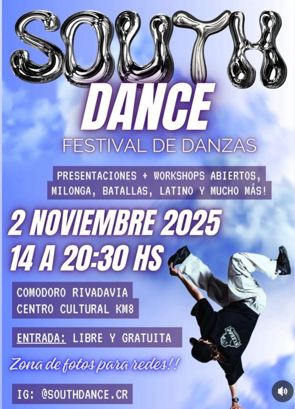 – En el Centro Cultural de Km 8, de 14:00 a 20:30, se realiza el festival de danzas “South Dance”, con entrada libre y gratuita. Hay presentaciones, workshops abiertos, milonga, batallas, latino y mucho más.