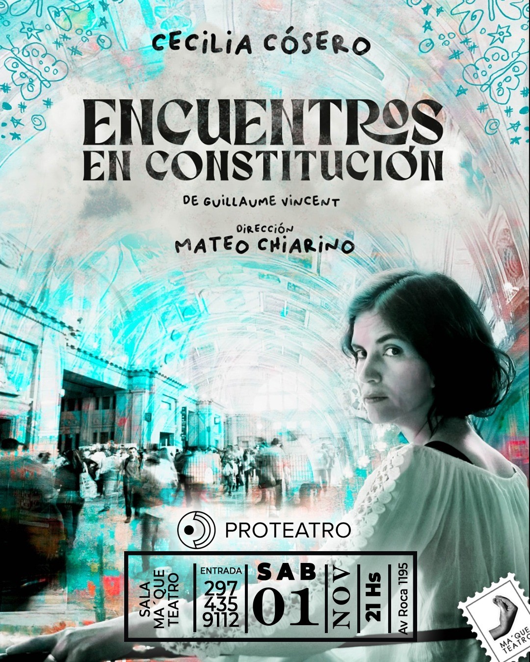 – En Ma’ Qué Teatro (Av. Roca 1195), desde las 21:00, se presenta “Encuentros en Constitución”, de Guillaume Vincente, con Cecilia Cósero y la dirección de Mateo Chiarino. Las entradas pueden adquirirse mandando mensaje al 297-4359112.