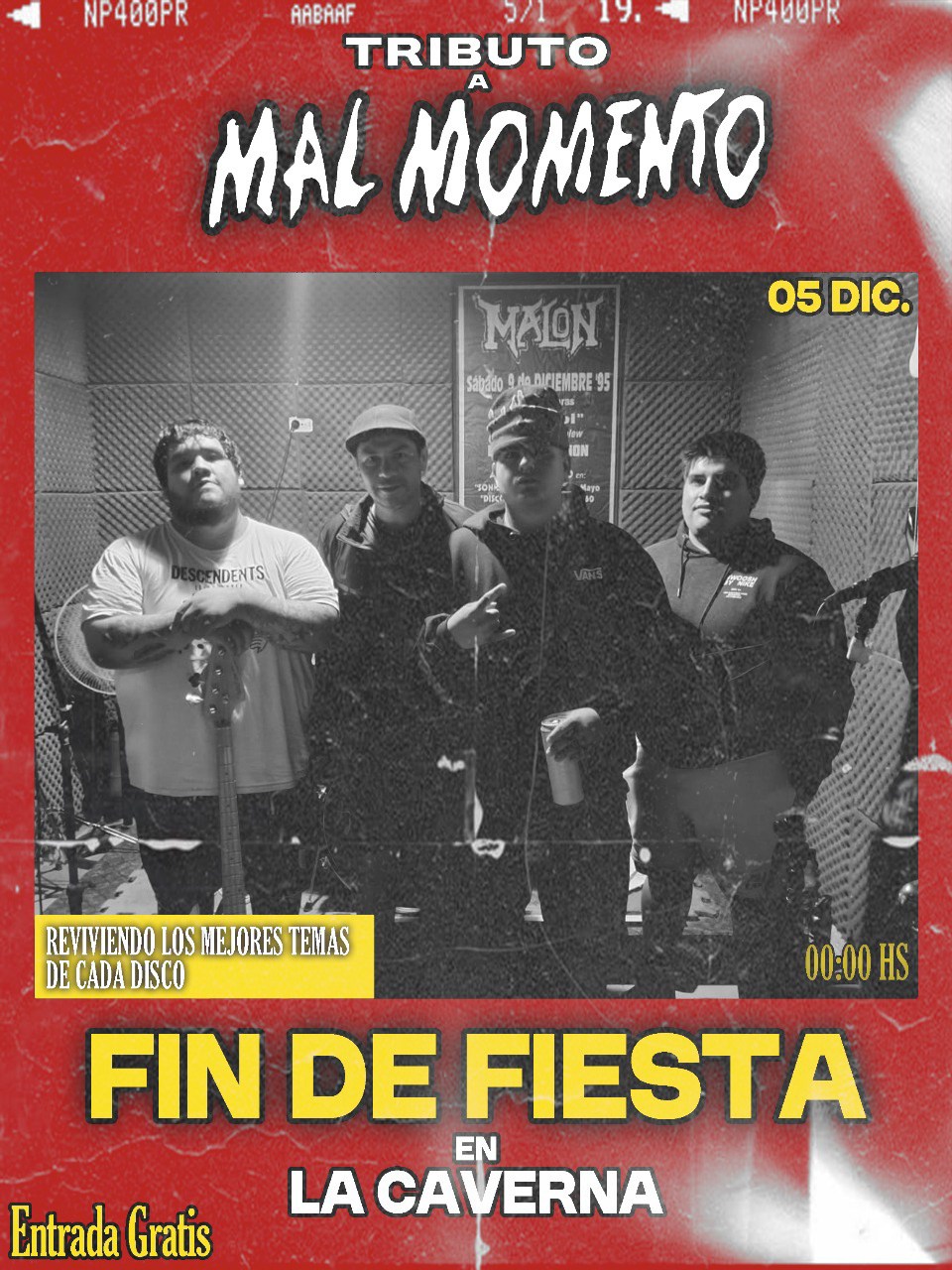 – En La Caverna Resto-Bar (Dorrego 1425) se presenta Fin de Fiesta (tributo a Mal Momento), a partir de las 00:00 hs.