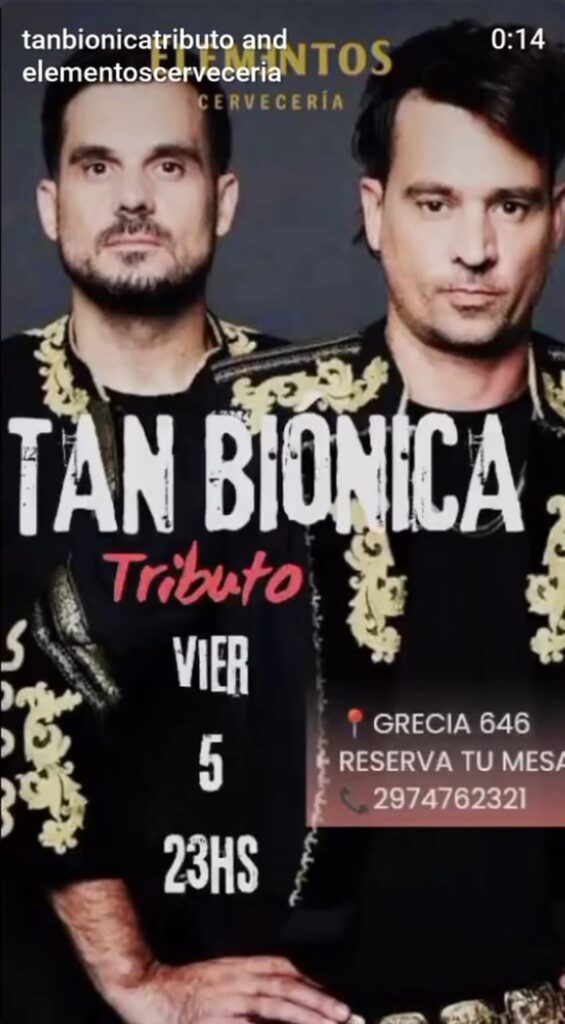 – En Elementos Cervecería, desde las 23:00, toca el tributo a Tan Biónica.