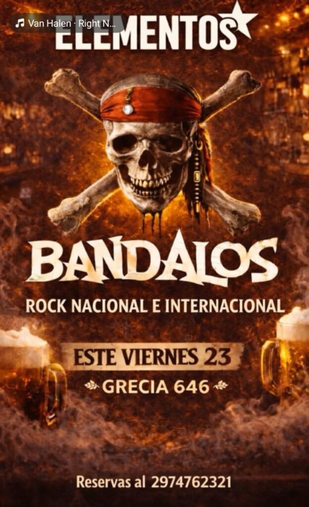 – En Elementos Cervecería, a partir de las 23:00, se presenta Bándalos, con temas de rock nacional e internacional.