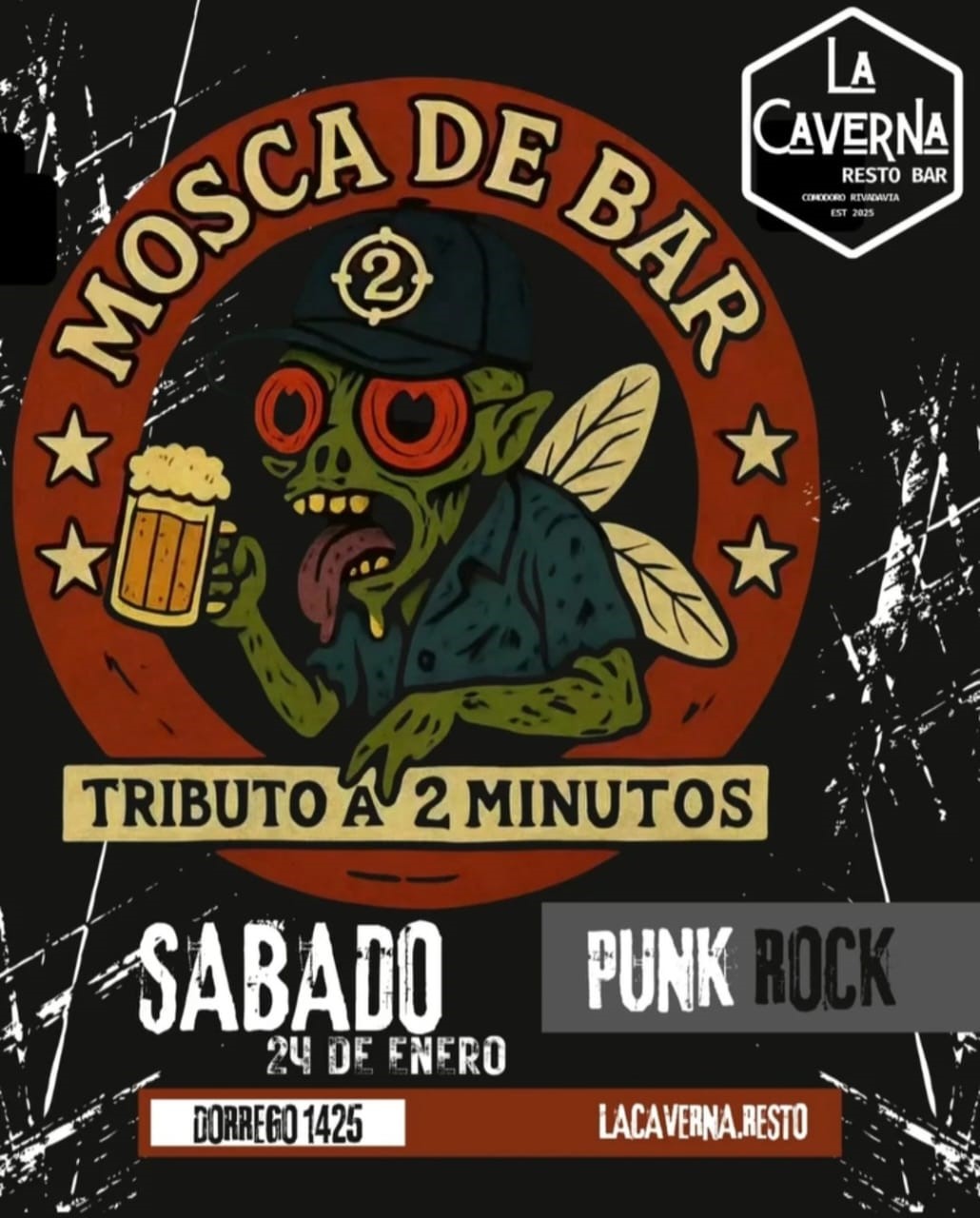 – En La Caverna Resto Bar, desde las 23:00, se presenta Mosca de Bar (tributo a 2 Minutos).