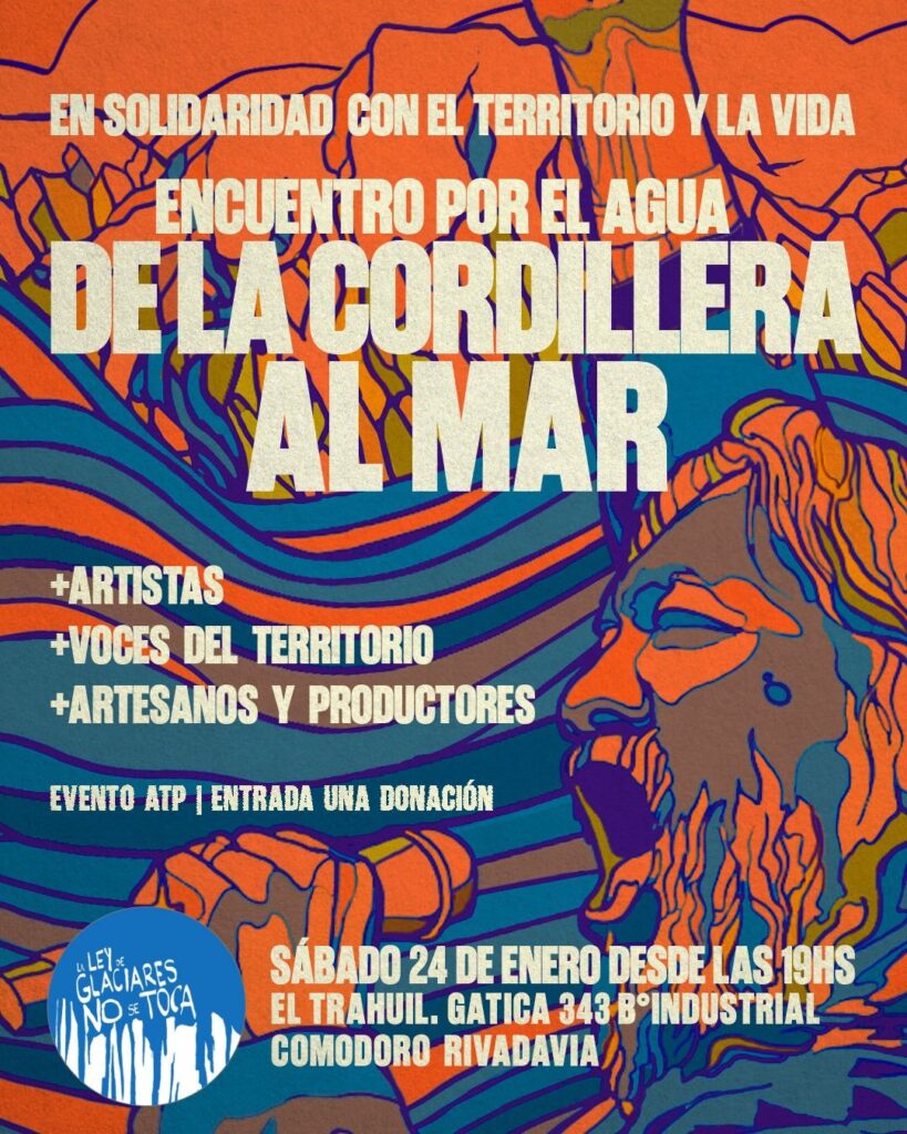 – En El Trahuil, desde las 19:00, se realiza el festival solidario “Encuentro por el agua – De la cordillera al mar”, con artistas, voces del territorio, artesanos y productores. El evento es apta para todo público y la entrada consiste en una donación, que será enviada a la Cordillera o a los vecinos de Comodoro Rivadavia afectados por el deslizamiento del Cerro Hermitte.
